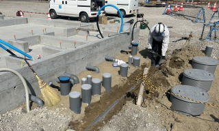 店舗や一般住宅の給排水設備の工事を行っています。写真右側は合併式浄化槽です。